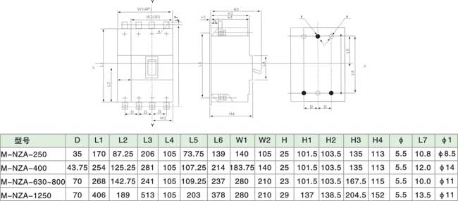 ■M-NZA-125--160插入式,板前接線外形尺寸及安裝尺寸